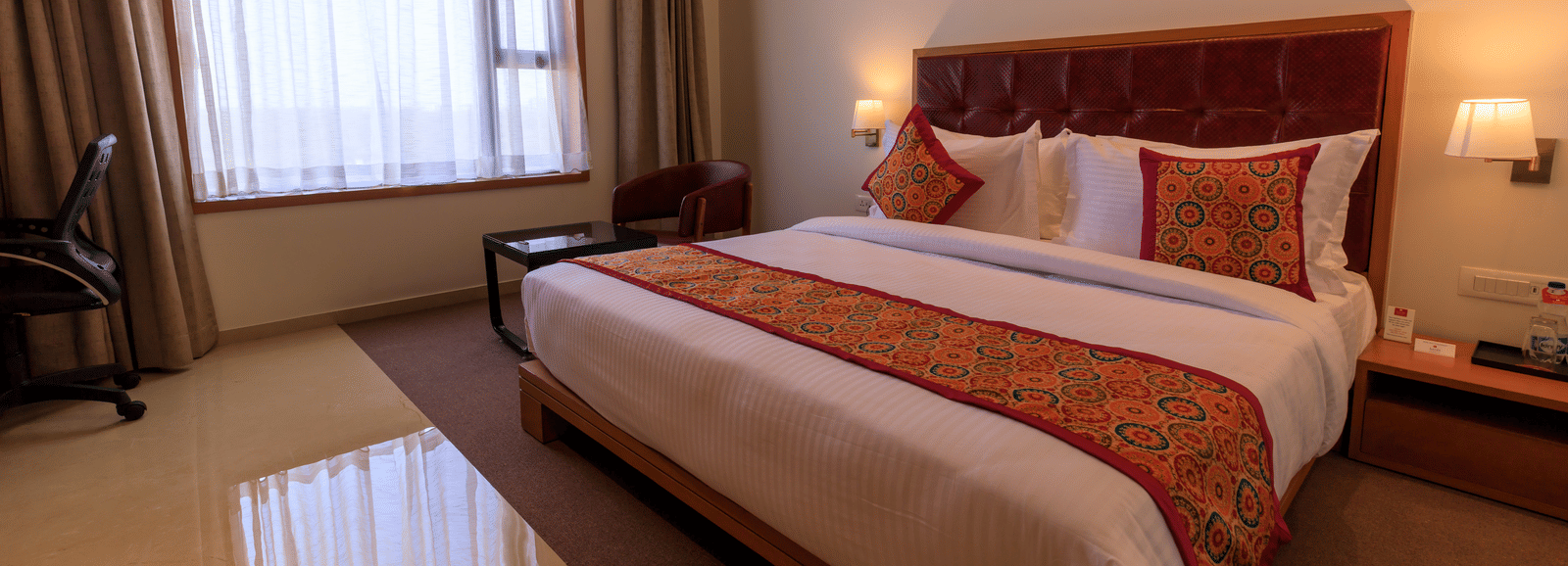 Designed for both comfort and flexibility, this 288 sq. ft. room in Jamnagar accommodates up to four guests, making it ideal for families or small groups. Guests can choose between twin beds or a king size bed, ensuring a stay tailored to their preference. With modern amenities and a thoughtfully designed space, it promises a relaxing and convenient experience.