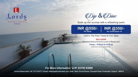 Relax and unwind with our poolside offer at Lords Inn Porbandar, which includes access to the swimming pool, a welcome mocktail on arrival, and a delicious lunch.